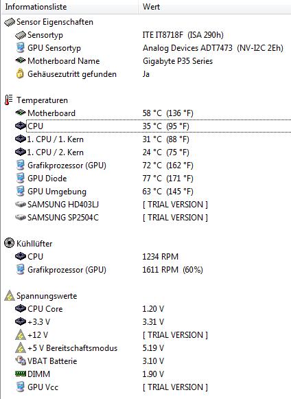 Als Board leistet ein Gigabyte P35 DS4 tapfer seine dienste, für die richtige kühlung sorgt der Zalman 9700 LED.