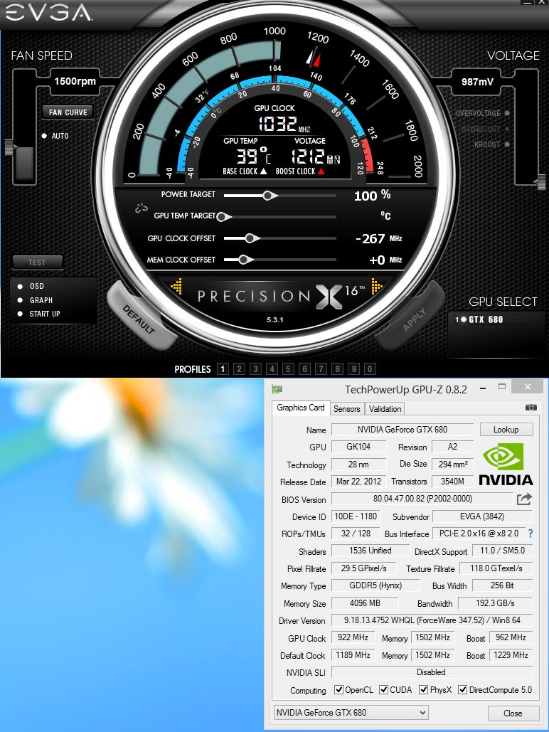 hab mal evga precession geladen und den gpu clock offset auf - 264 mhz gemacht und da zeigt der bei gpu clock in den gpuz 925 und auf evga in load 1032???