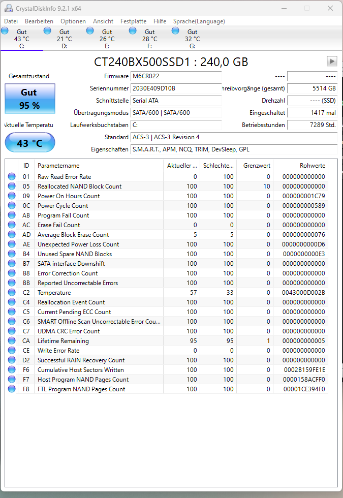 - HDD / SSD: … Crucial BX500 240 GB 3D NAND