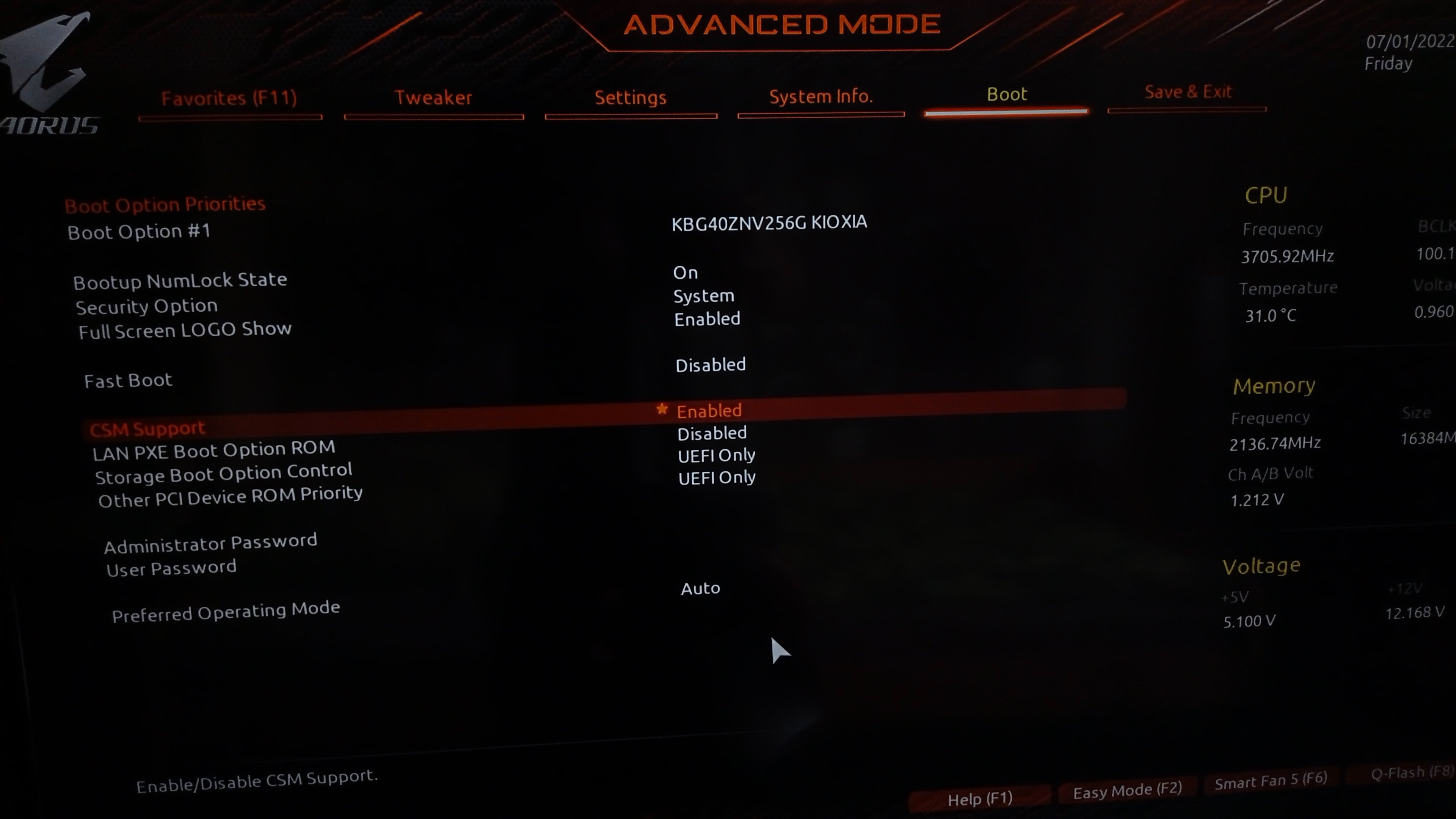 - Mainboard: Gigabyte B550 Aorus Elite V2