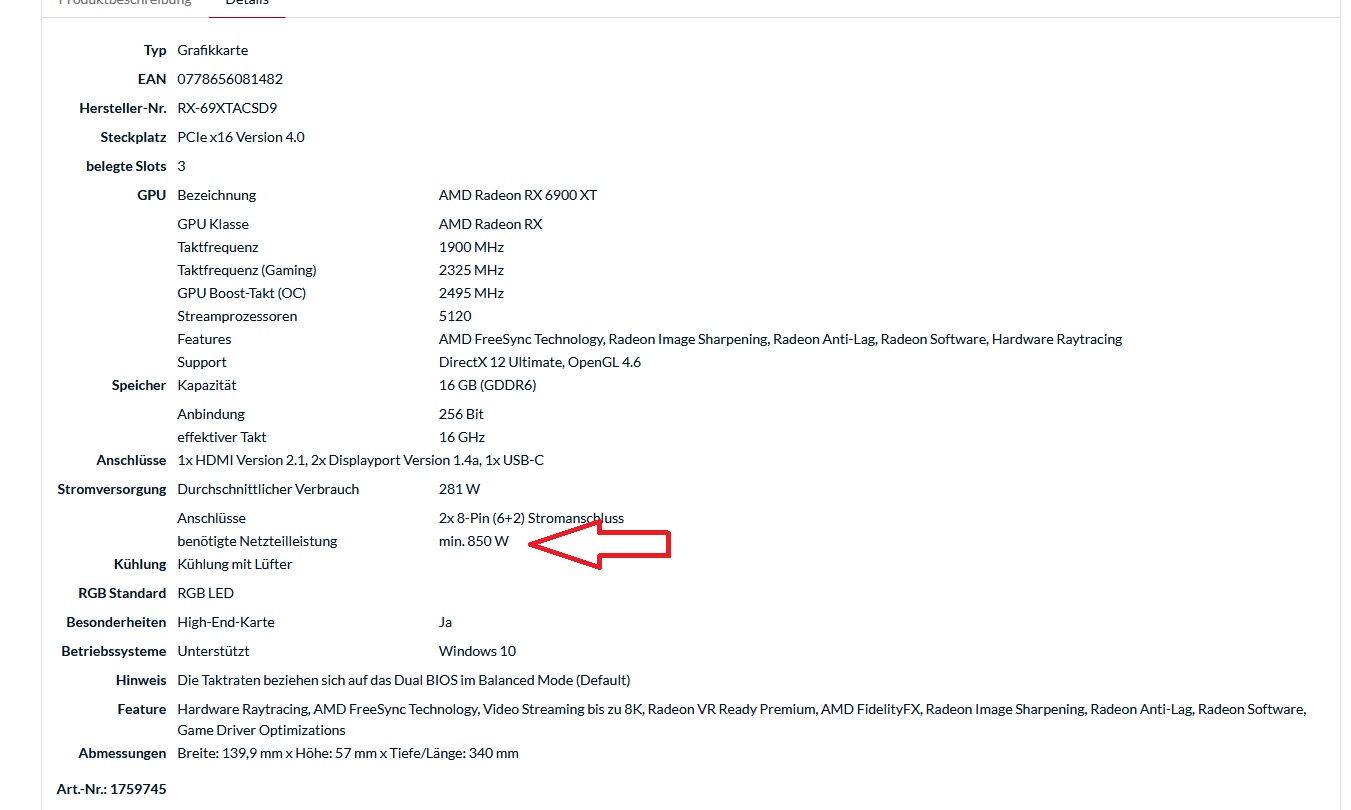 Bei AMD gibt es nur die Referenzmodelle die nicht so wie custom modelle übertaktet sind, was bedeutet das "min." vor den 850 watt für dich?