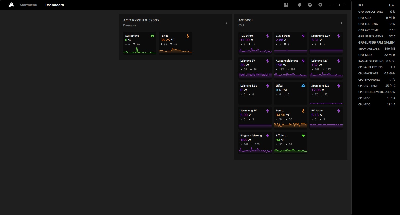 und was sagt das Dashboard vom Netzteil ??