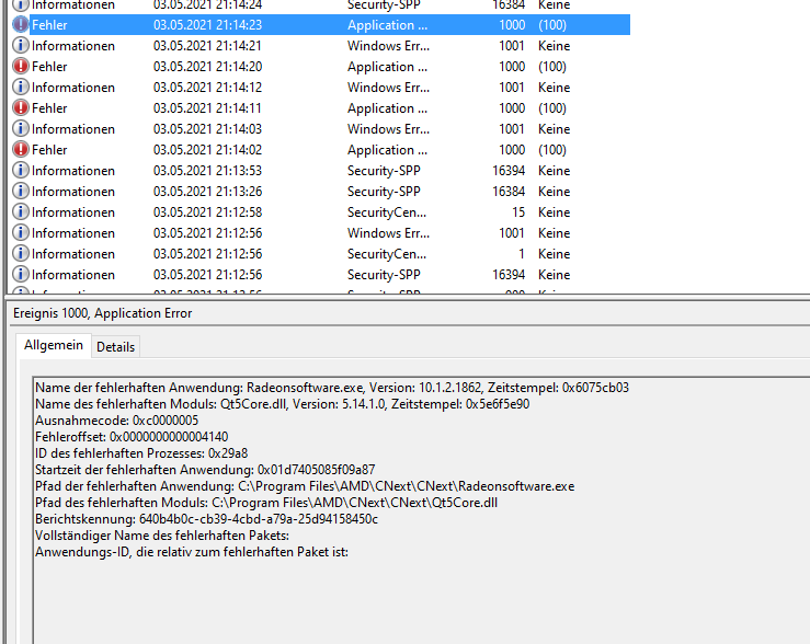 Pfad des fehlerhaften Moduls: C:\Program Files\AMD\CNext\CNext\Qt5Core.dll
