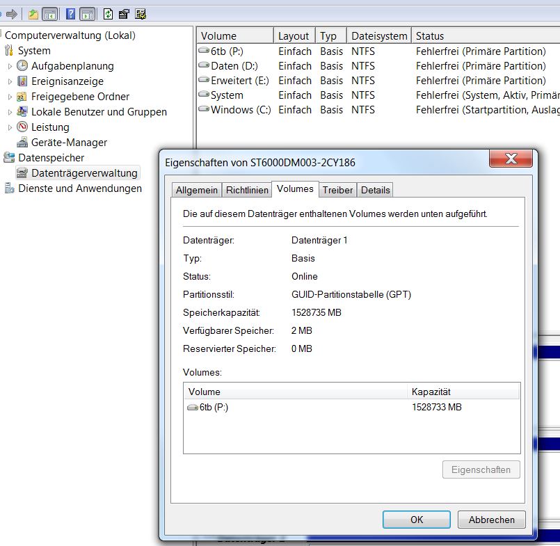 Hallo, ich hab mir eine 6tb festplatte gekauft kann aber nur 1,5tb nutzen, mehr lässt mir windows 7 (mit BIOS) anscheinend nicht zu.