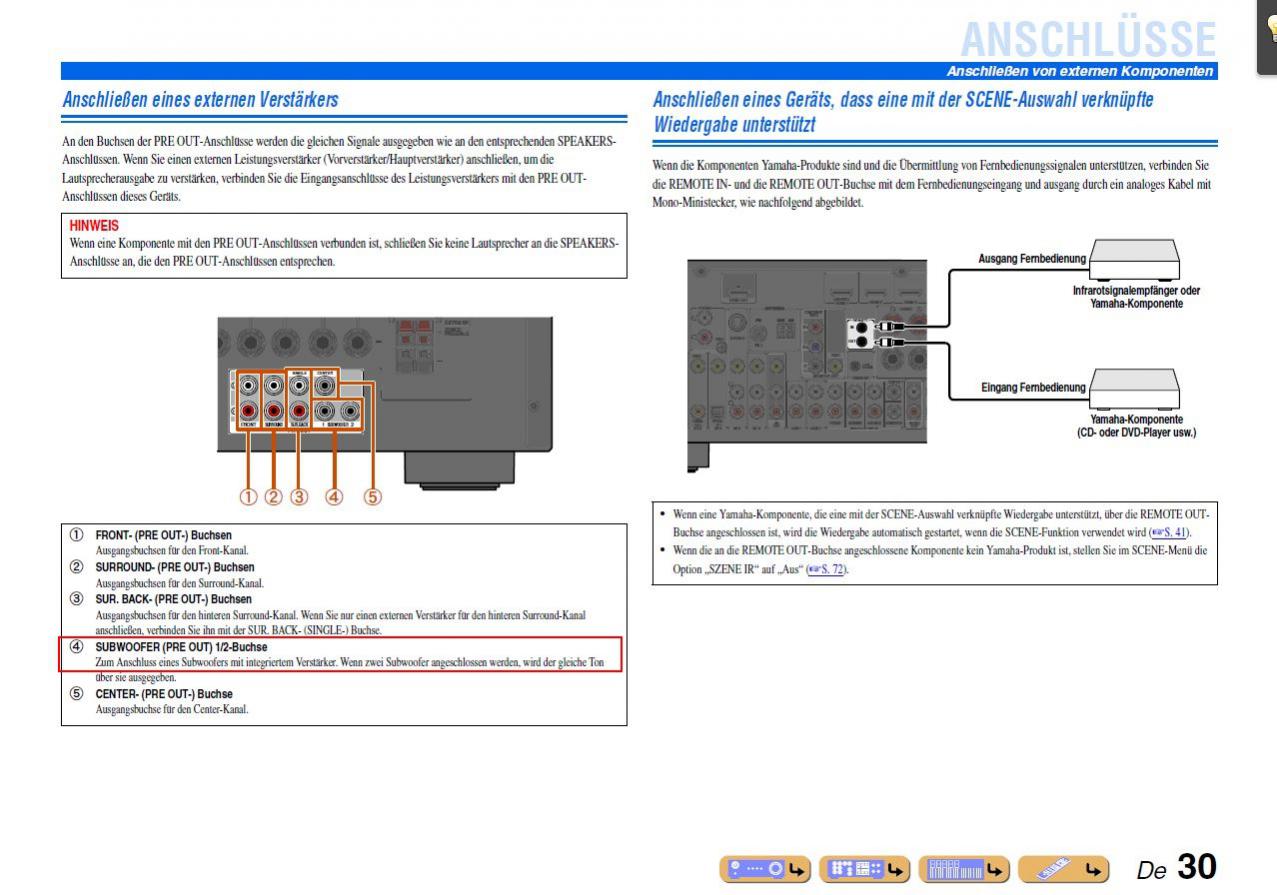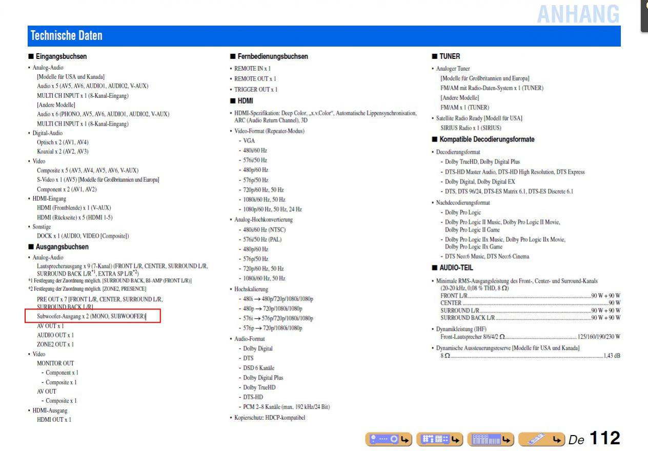 Gemeint ist der Yamaha RX-V667. Es scheint nicht ganz sicher. Denn Subwoofer Ausgänge sind 2 vorhanden.