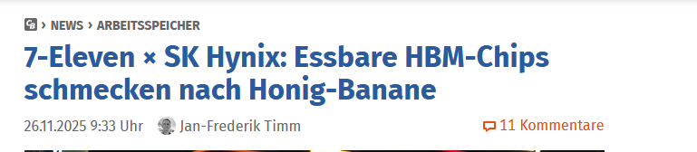 Der High-Bandwidth-Memory-Marktführer SK Hynix und die Einzelhandelskette 7-Eleven bringen in Kooperation die ersten essbaren HBM-Chips auf den Markt. HBM steht in diesem Fall für „Honey Banana Mat“ (Honig-Banane-Geschmack). Die „Seven Select Honey Banana-flavored HBM Chips“ sind vorerst nur in Südkorea verfügbar.