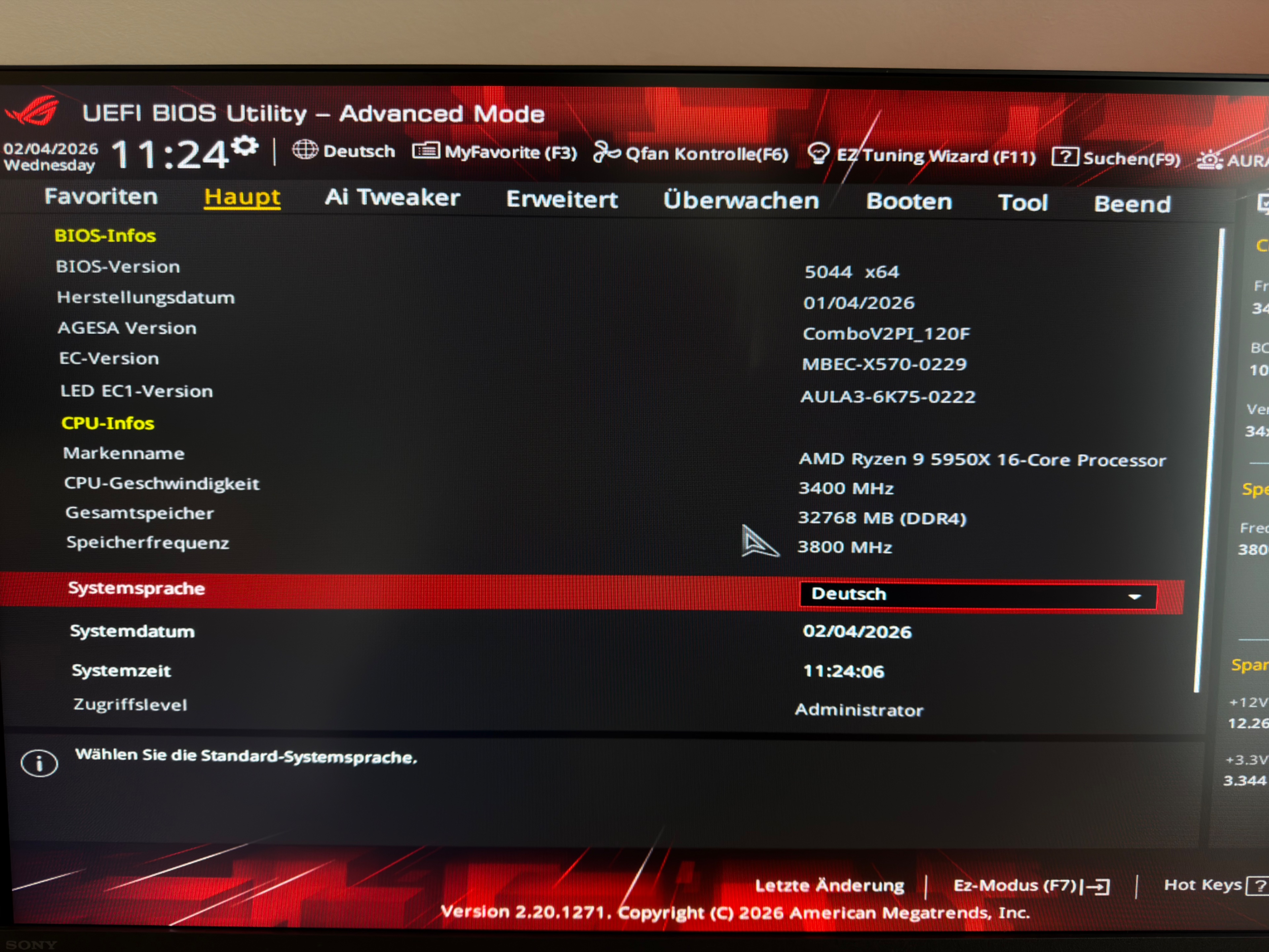 Ein CMOS Reset und das anschließende erneute Setzen der Einstellungen haben keine Verbesserung gebracht. Auch ein Downgrade zurück auf BIOS 5043 (Backflash) hat nichts geändert, weshalb ich aktuell wieder auf BIOS 5044 bin.
