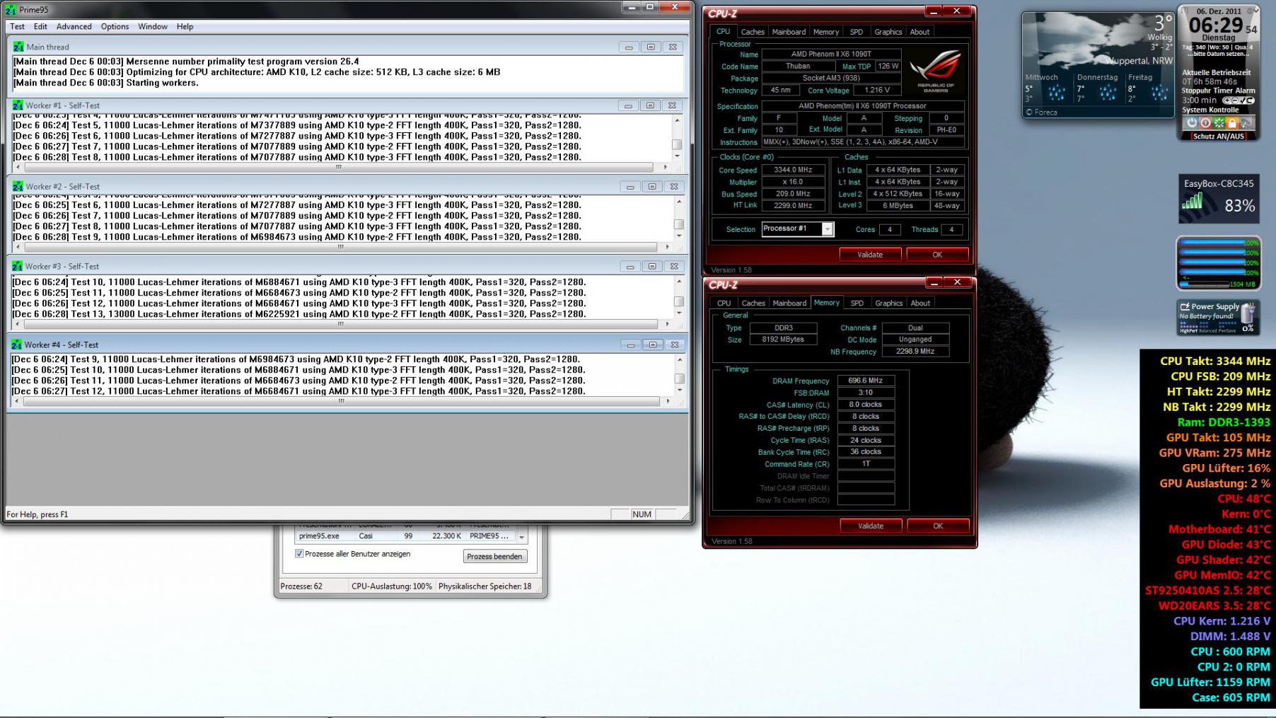 Nach dem ich die NB-CPU-VID von 1,2V auf 1,275V und ACC auf +2 gestellt habe, ist mir die CPU sofort als Last drauf kam abgeschmiert, Rechner ist aus und neu hoch gefahren.