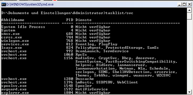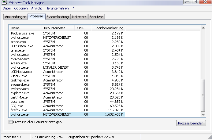 Schau mal, welche Prozesse von der svchost.exe ausgeführt werden.