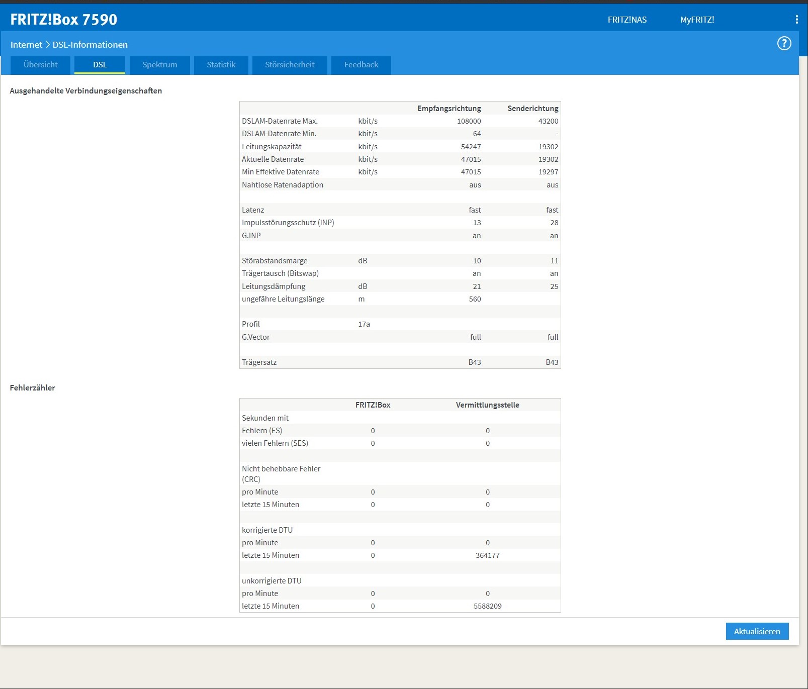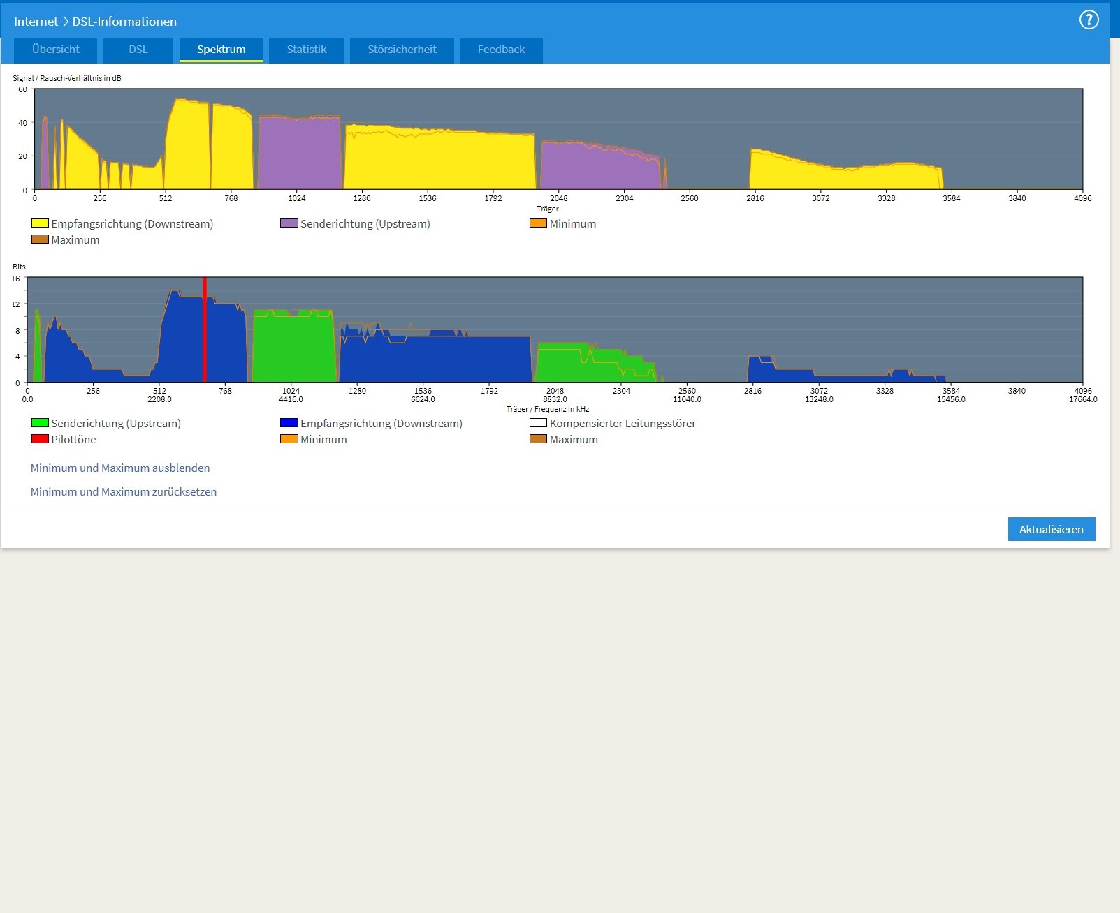 Mach mal einen Screenshot der DSL-Statistik, in dieser wird die Störabstandsmarge über die letzten 24 Stunden angezeigt und lade diesen hoch.