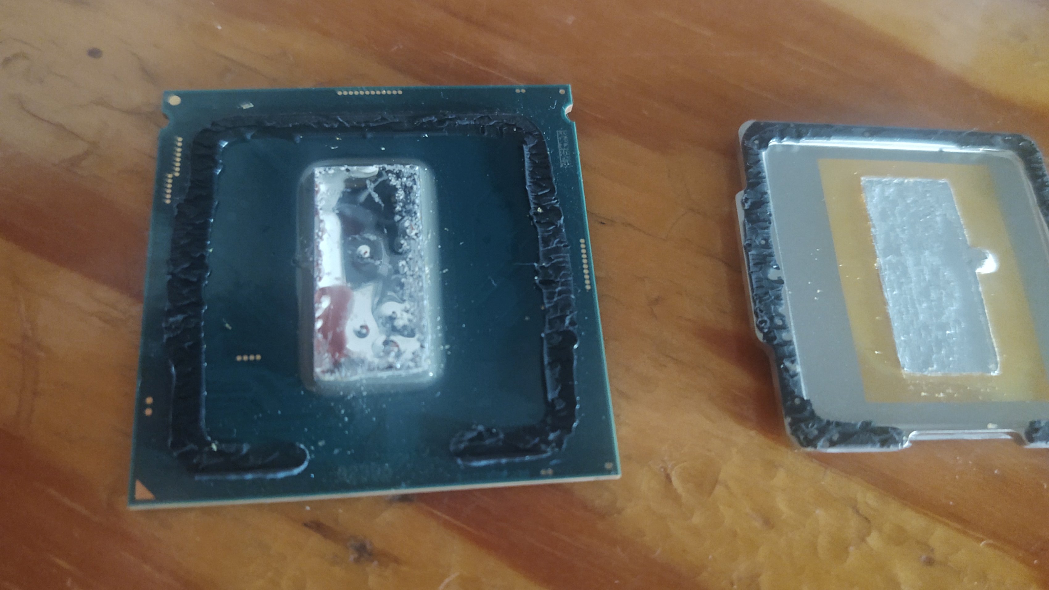 Hier bin ich mir nicht sicher - keine glänzende Oberfläche sondern matt also ja wahrscheinlich Indium oder? Hmm naja denke ich könnte ja noch mehr runterspachteln, aber der unterschied sollte sich ja in Grenzen halten bzw würde ich es an den Temperaturen sehen.