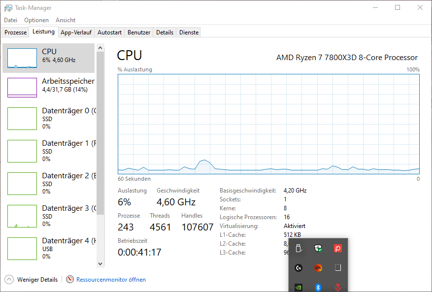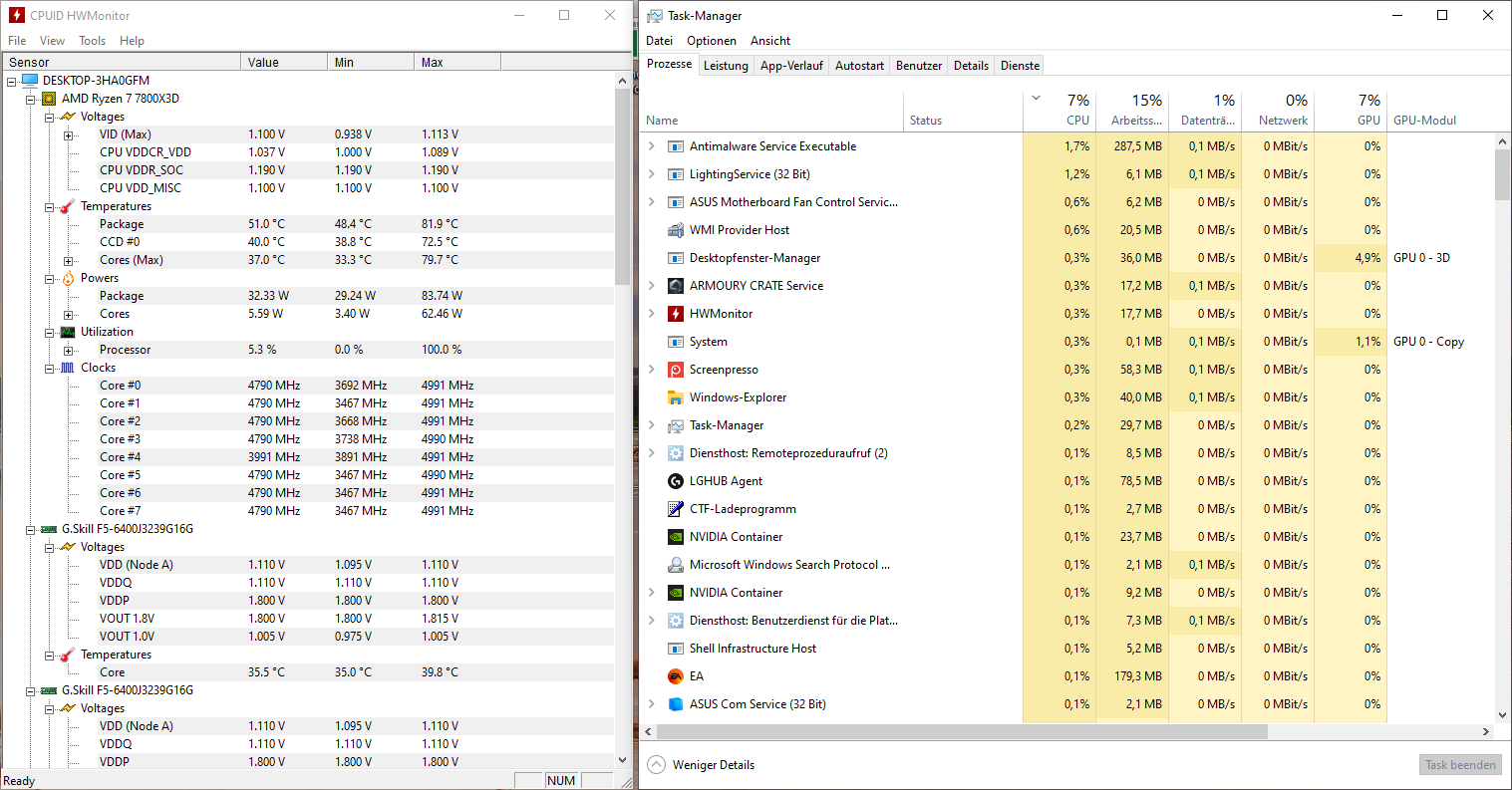 - Prozessor (CPU): R7 7800x3D -> PBO aktiviert