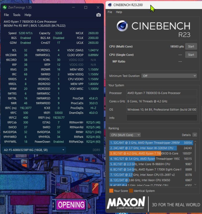 Lade doch mal die Defaults im BIOS, deaktiviere dann den Armorey Crate Mist im BIOS. Lade dann noch das RAM OC Profil und stelle dann den Takt händisch auf 6000 MHz runter. Und versuche es nochmal mit CBR23.