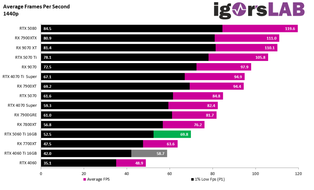Die 5070Ti hat auch ihre Schwächen, dennoch ist sie gegenüber der 9070XT noch etwas schneller, effizienter und spielt beim Pathtracing in einer anderen Liga.