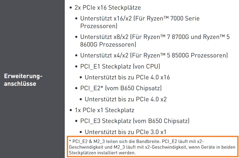 Das hat drei voll (4x) angebundene PCIe 4.0 SSD Slots, zusätzlich 6x SATA ohne Lanesharing.