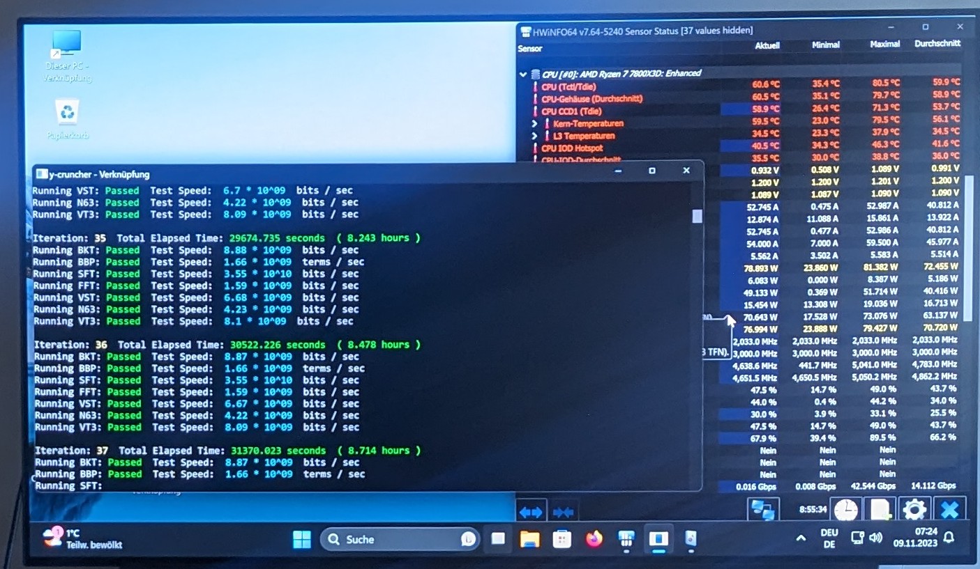 3. Y-Cruncher (neue Version, 120s, All Core) overnight als Abschluss (hat bei mir halt nichts gefunden, ka wie gut/sinnvoll dies wirklich ist)