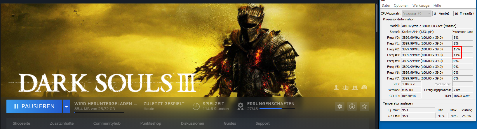 Ja gut du hast ja auch nur einen 8 Kerner,ich ja einen 16 Kerner ,da liegt der Unterschied.Ich brauche halt auch etwa mehr Strom als du. 10-15 Watt idle wäre ein Traum,aber meiner braucht halt 25-30 Watt im Idle.Manchmal je nach dem schwankt die CPU auch mal auf 37 Watt hoch.Das ist dann schon das maximum im Idle.Sparsamer bekomme ich die CPU irgendwie nicht hin.Da sieht man mal das die moderne Fertigung keinen Effekt beim Idle Stromverbrauch hatte.Gravlens schrieb:@latiose88 Ja, hängt halt dann auch vom Verbrauch ab, wenn es sich kaum unterschiedet zum Idle dann spielt es keine Rolle ob man es als Idle bezeichnet oder nicht wenn der Unterschied so gering ist.^^
