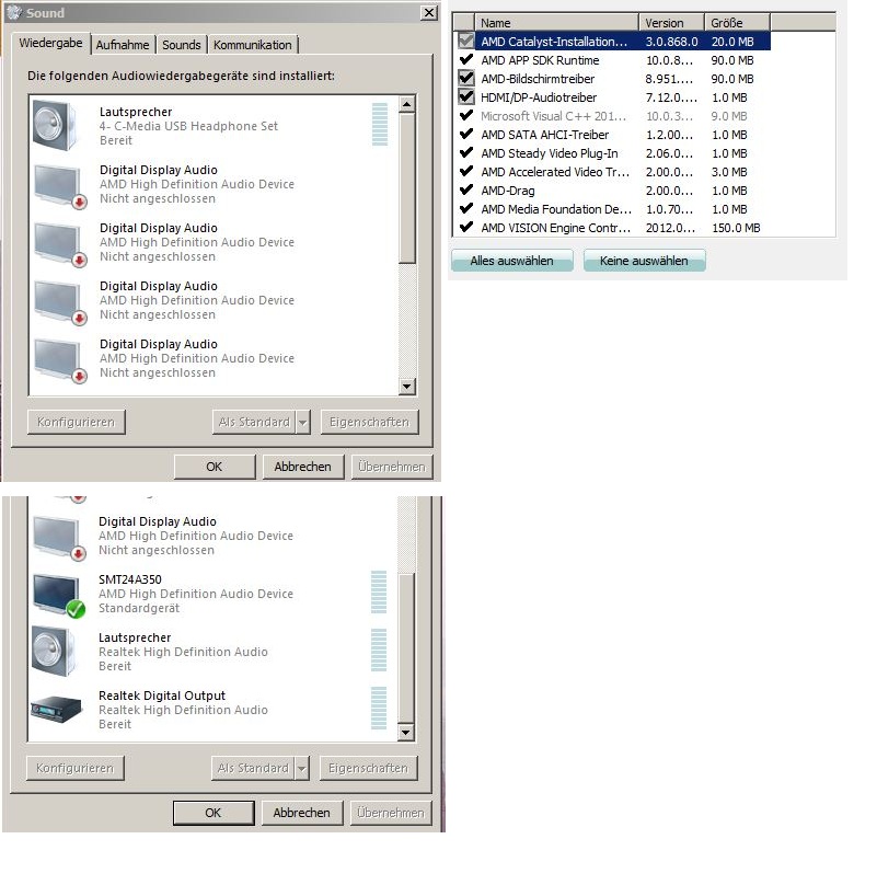 ich habe eine frage zum hdmi audio ausgang meiner 7850 grafikkarte. was muss ich für einstellungen vornehnemen um den ton auf den monitor zu bringen. der monitor ist ein samsung. modell SMT24A350. angeschlossen ist das ganze per hdmi 1.4 kabel. treiberversion der grafikkarte ist die 12.3 und da ist der treiber für hdmi/dp auch aufgelistet und installiert.