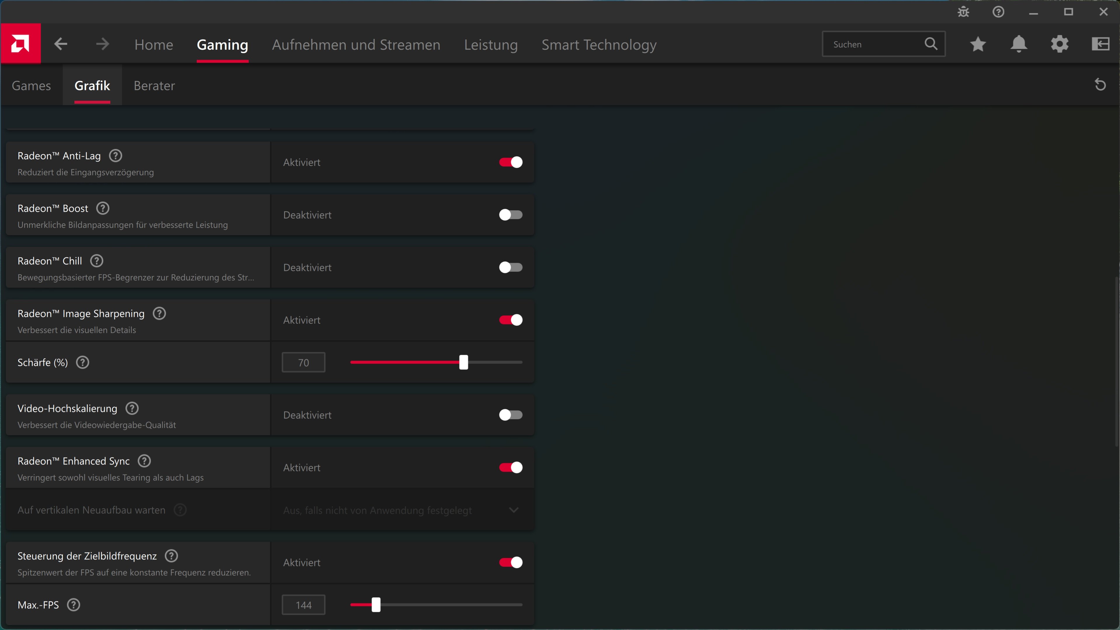 etliche Grafikkarten Einstellungen probiert in der Adrenalin Software