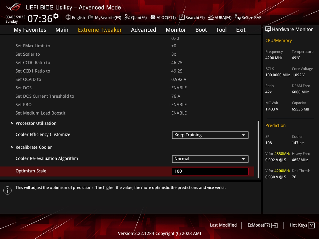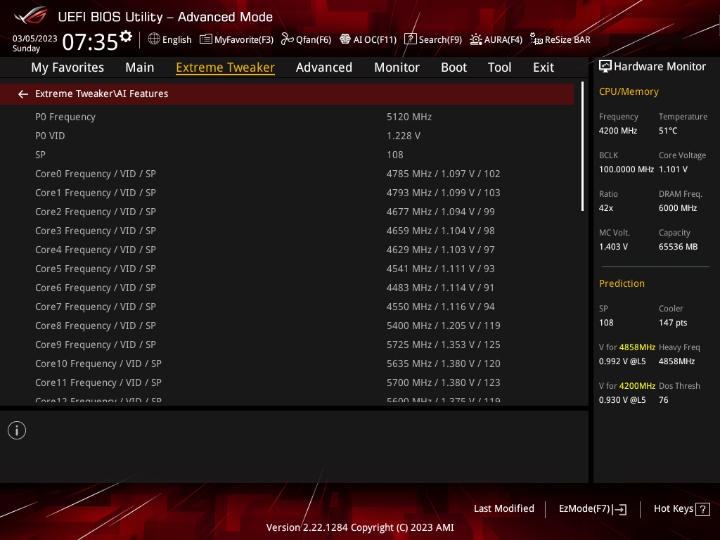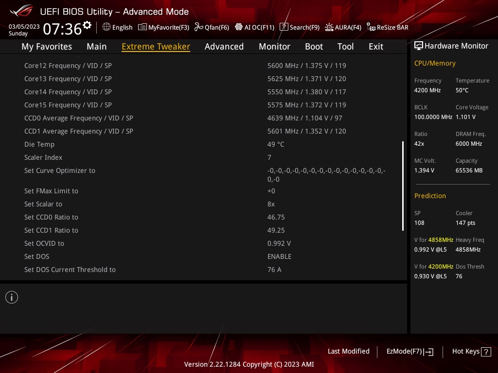 Im Asus-Bios gibt es es diese SP Prediction, die die Güte der verbauten CPU ausliest. Das erste Chiplet mit dem 3D-Cache hat ziemlich niedrige, oder sogar sehr geringe (=miese?) Werte, während das zweite Chiplet gute Werte ausweist.
