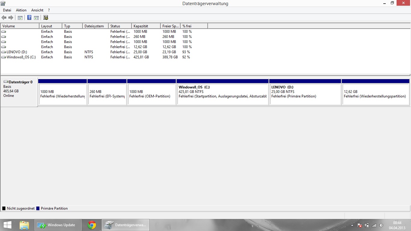 Bei beiden wurde die Recovery Partition nach dem Sichern gelöscht und dem Speicher hinzugefügt. Mit dem USB-Stick wurde der Werkszustand wieder hergestellt und die Recovery Partition wieder angelegt.