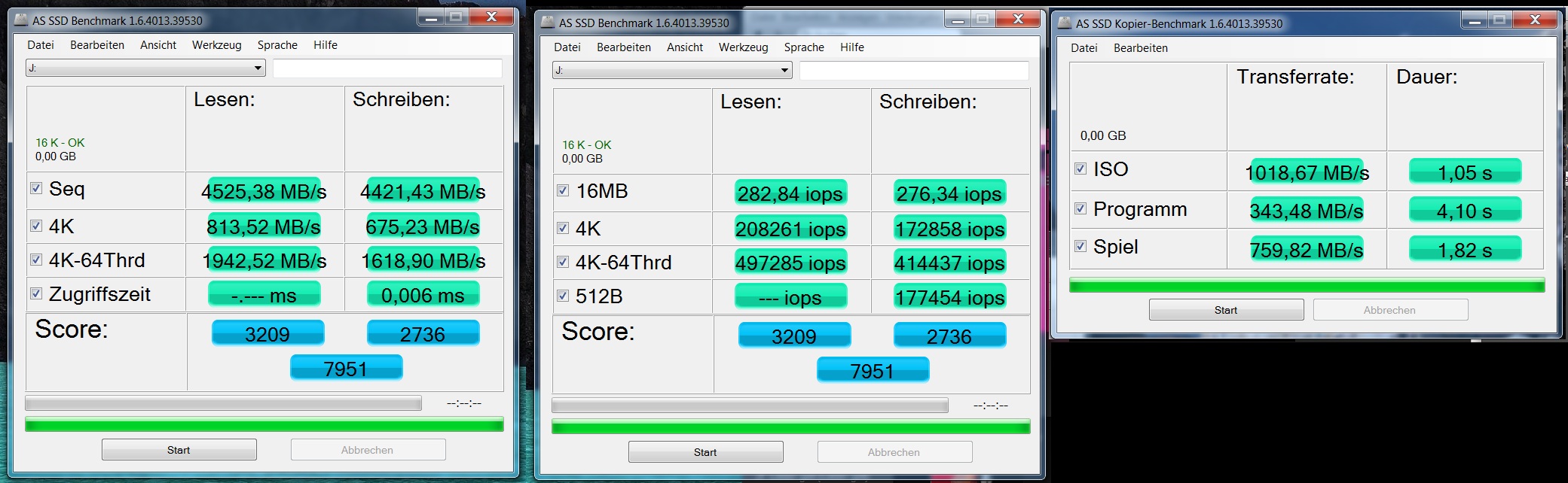 die laufen auch mit knapp 1600...allerdings ist der Bench aus dem laufenden System, sprich Swap und temp liegen ja darauf und auf die wird ja ständig zugegriffen. Kann schon sein das es daran liegt. Ausserdem war der bench nicht vollständig. Die eine Zugriffszeit würde nicht mit einbezogen. Auch hast du ein Sockel 1155. Des weiteren schrieb ich ja oben was ich alles dabei aufhatte. Wollte mit dem Screen nur zeigen was aus dem Stand, quasi im normalen Betrieb erwartet werden kann.