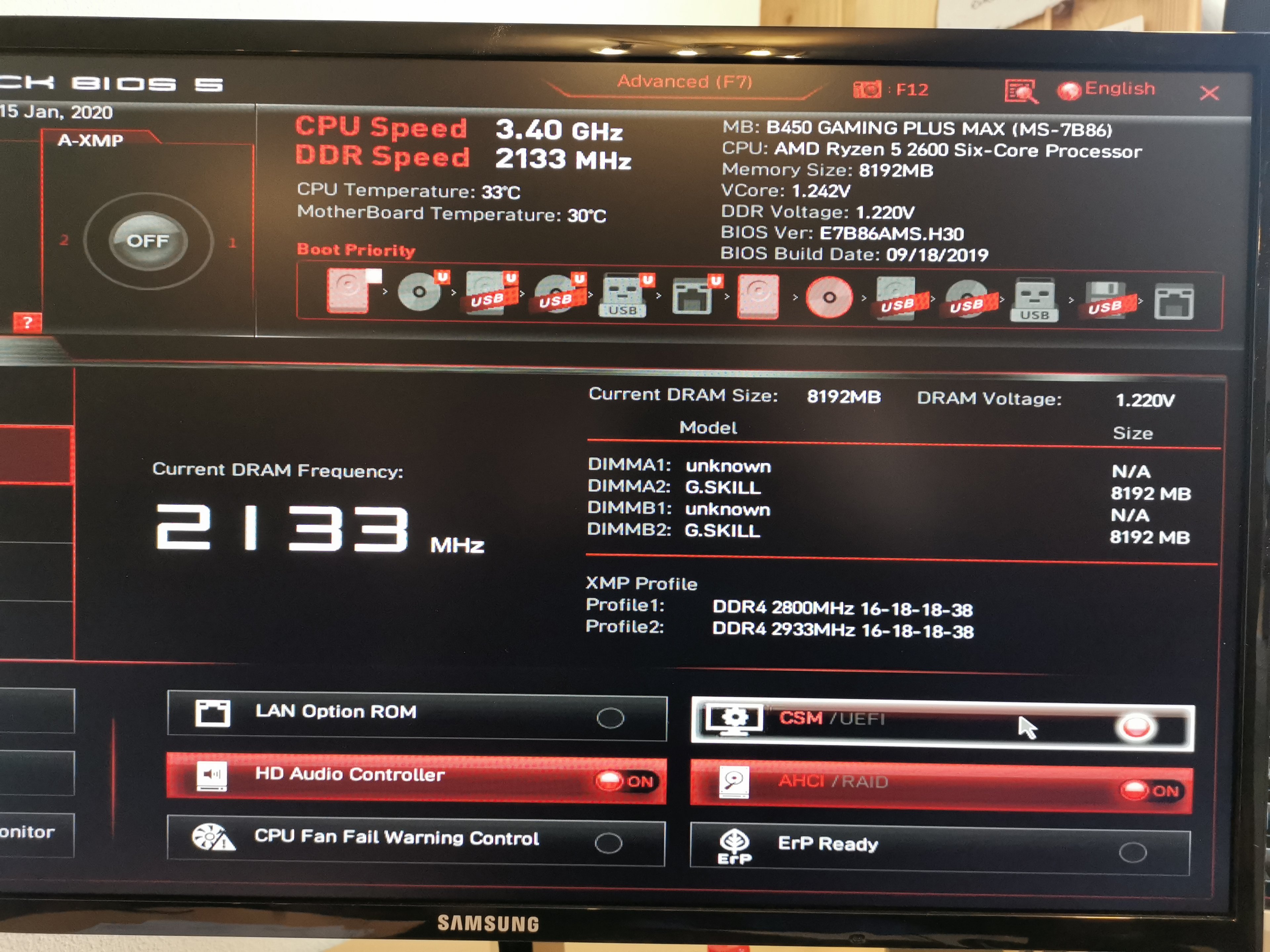 - 16 GB G.Skill Aegis 3000 mhz (2x8)