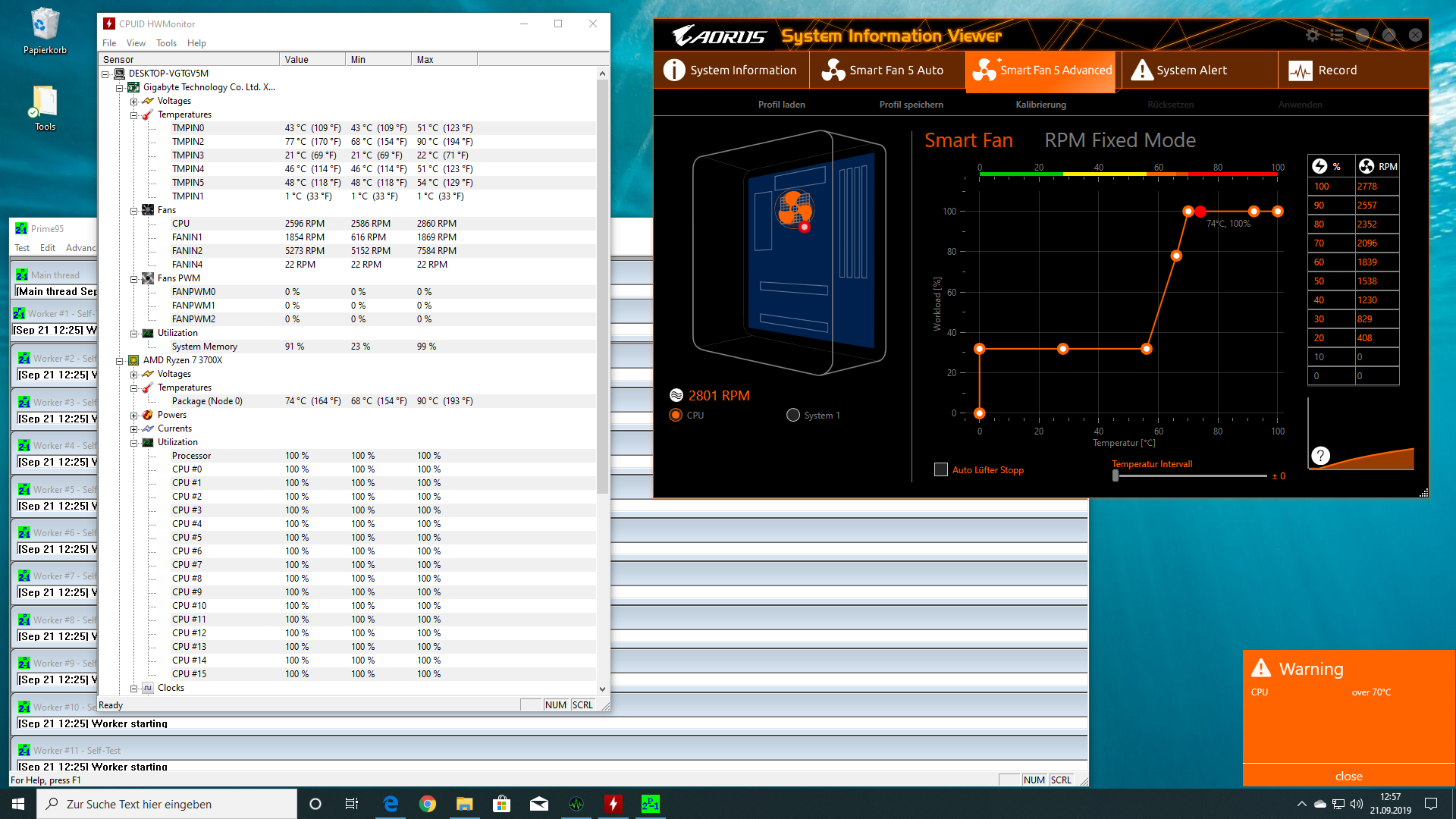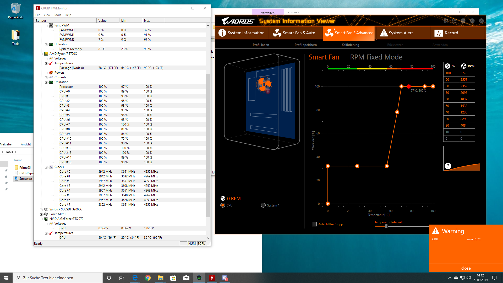 Alle Lüfter sind ab 70 Grad auf 100% Last.