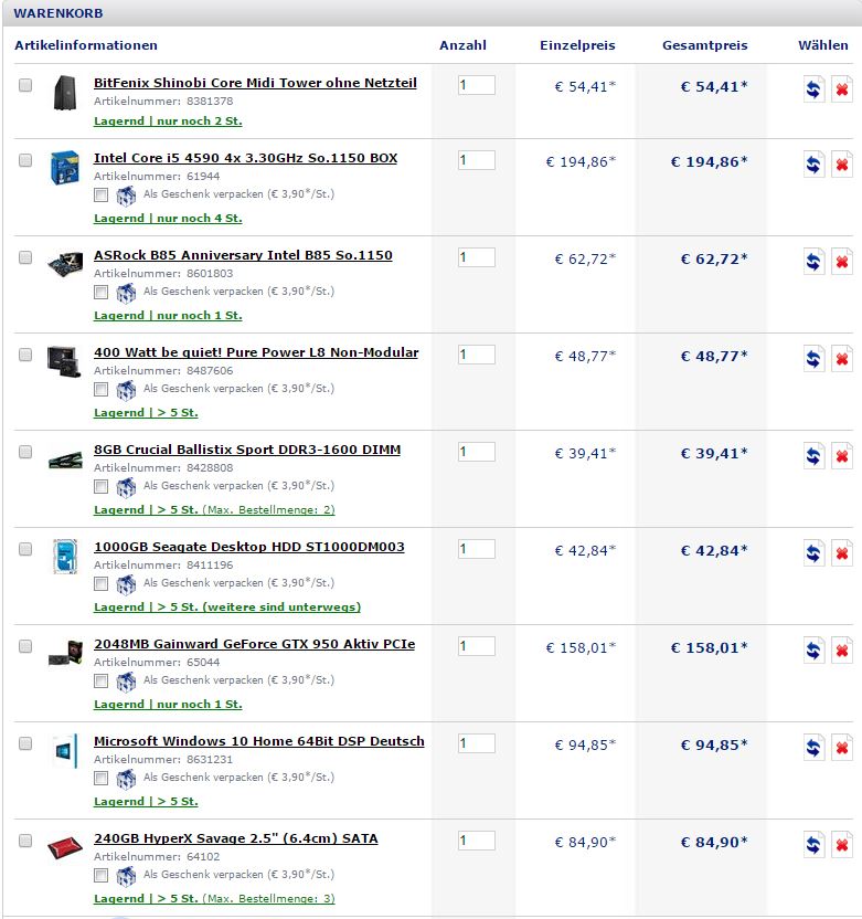 Lieber eine 960 die mittlerweile kaum teurer ist, dafür das Win 10 weglassen und eine Win 7 Lizenz nutzen, die man kostenlos upgraden kann (wenn eine gekauft werden muss, bitte nur mit COA/Aufkleber!). Den Ohren zuliebe einen anderen CPU Cooler.