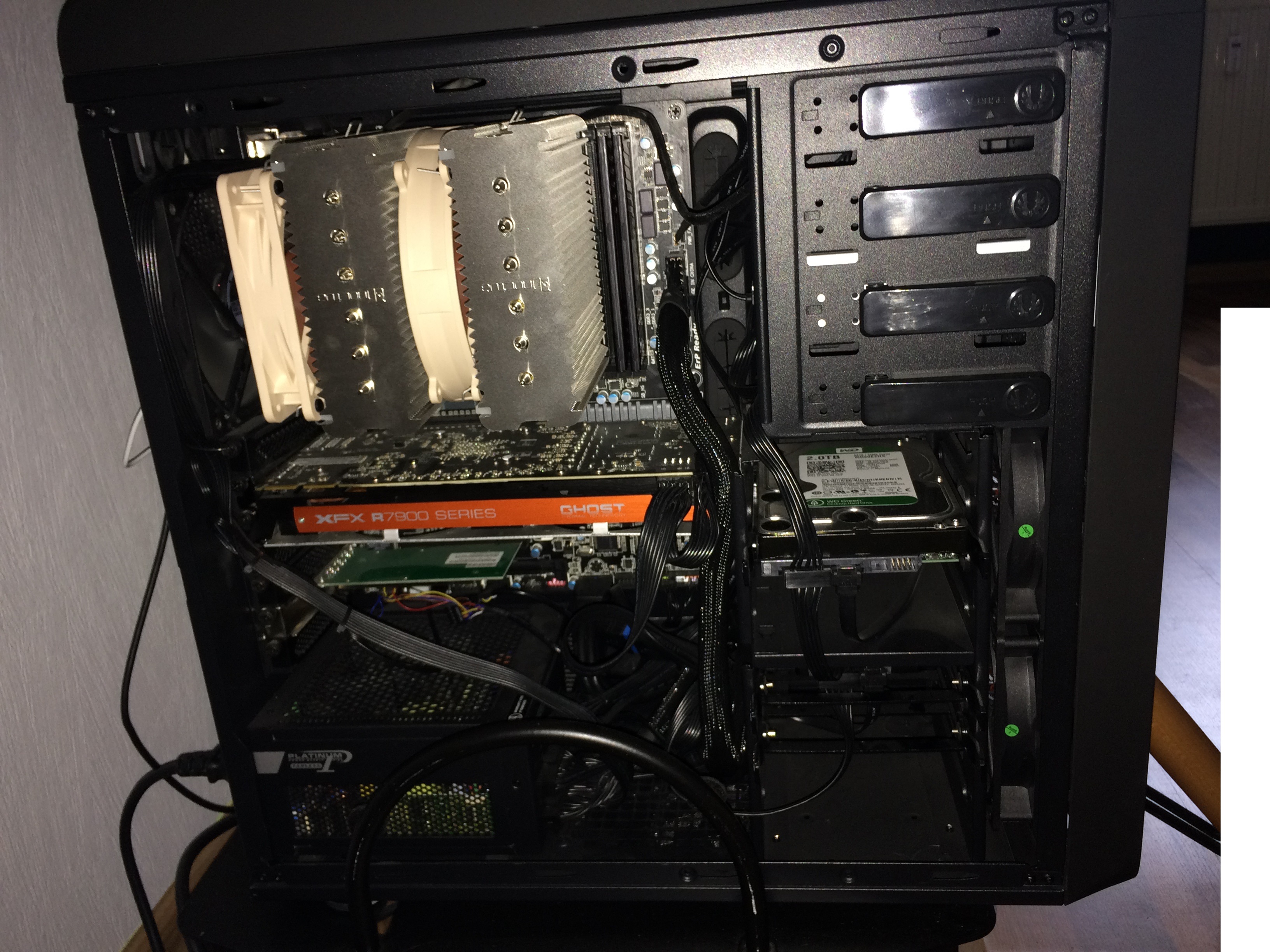 Wie man auf dem Bild vielleicht erkennt, hab ich einen Noctua NH-D14 CPU Kühler. Die CPU Temperatur geht selbst bei Volllast nie über 30Grad.