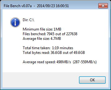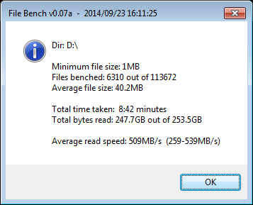 Ein gutes Jahr alt kann nicht stimmen, beide SSDs wurden Juli 2014 bzw. August 2014 neu gekauft und beschrieben, aber ja es ist um einiges schneller und das alles mit 500MB/s oder mehr liest hab ich nicht erwartet, da ich ja die komplette Partition ausgewählt hab mit allen kleinen Dateien.