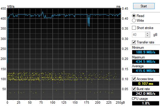 Ok besten Dank. Habe nun einmal HD Tune laufen lassen und es ist bis auf den Anfang und zwei Außreißer bei 2/3 über 400 mb/s. Jetzt bin ich wieder beruhigt.