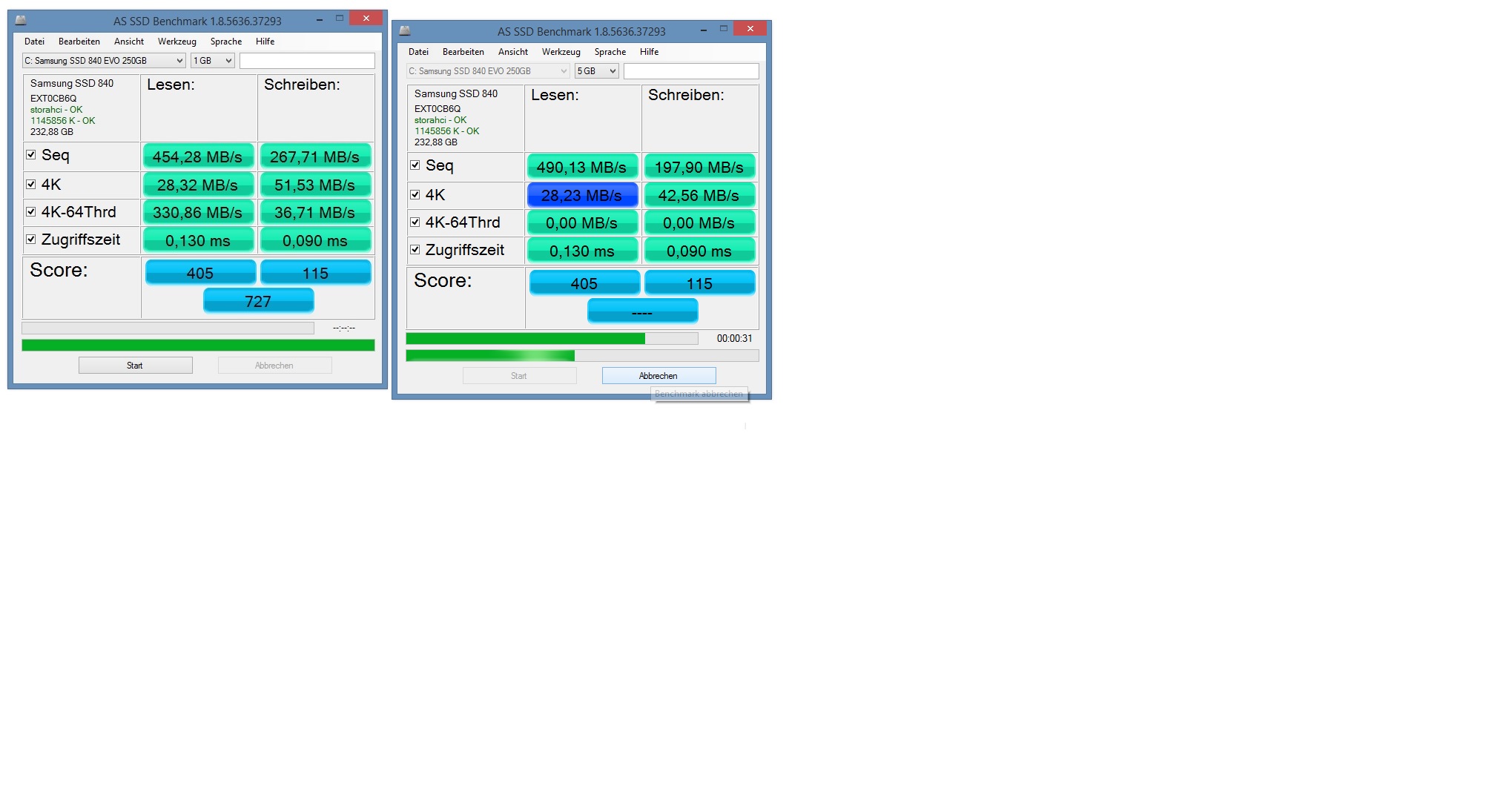 leider habe ich seit kurzem ein Problem mit meiner 840 evo von Samsung (240gb):
