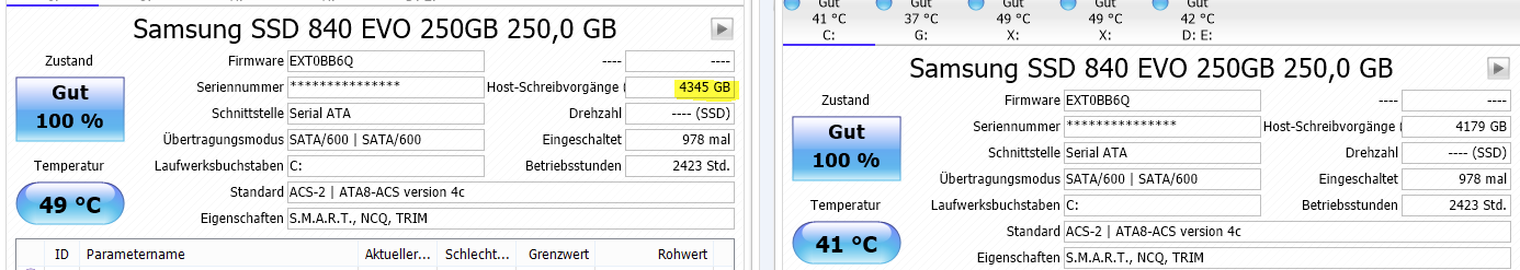 In anderen Foren kommen jetzt immer mehr Berichte von Leuten rein deren Rechner immer langsamer wurden, die aber nie wussten woran es liegt und auch nicht selber drauf kamen, dass die 840 evo Schuld ist, die auf alten Daten langsamer wird.
