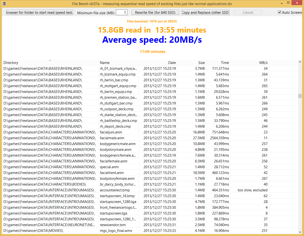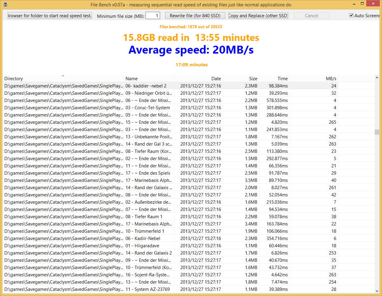Ich lasse jetzt nochmal einen anderen, alten 18GB Spiele Ordner mit garantiert nicht genutzten Daten auslesen.