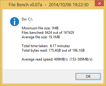 Sollte nicht der Fall sein, denn das Flag FILE_FLAG_NO_BUFFERING das in FileBench verwendet wird sagt Windows explizit dass die Daten nicht aus dem RAM Cache gelesen werden sollen sondern direkt von der Platte.