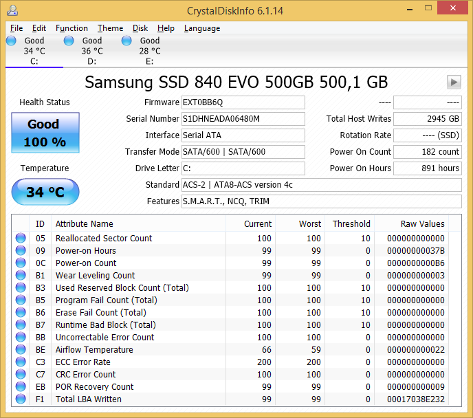 devebero schrieb:So, ich habe mal einfach meine C:\ SSD defragmentiert um zu schauen, ob sich die Werte ändern.