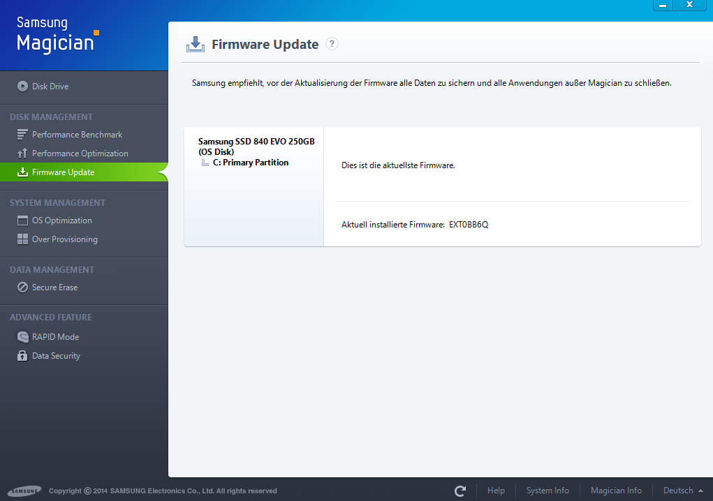 - Laut Samsung: "Zipped files must be used with Samsung Magician Software." -> Realität: "Magican" möchte unbedingt eine Internetverbindung haben.