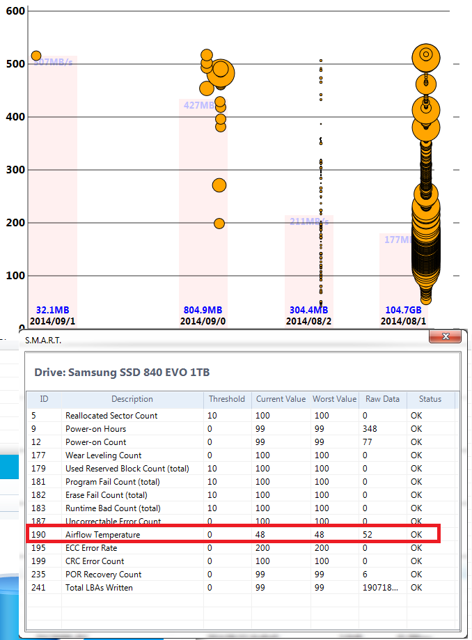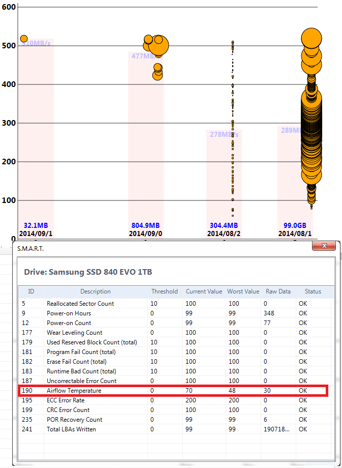 Ich konnte feststellen, dass selbst die SSD Temperatur eine Rolle spielt bei der EVO (siehe oben).
