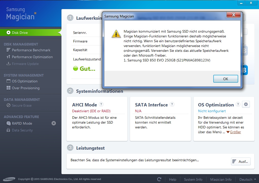 - Mein Motherboard unterstützt kein AHCI-Mode (dieser wäre eventuell nur durch ein kompliziertes FW-Update möglich)