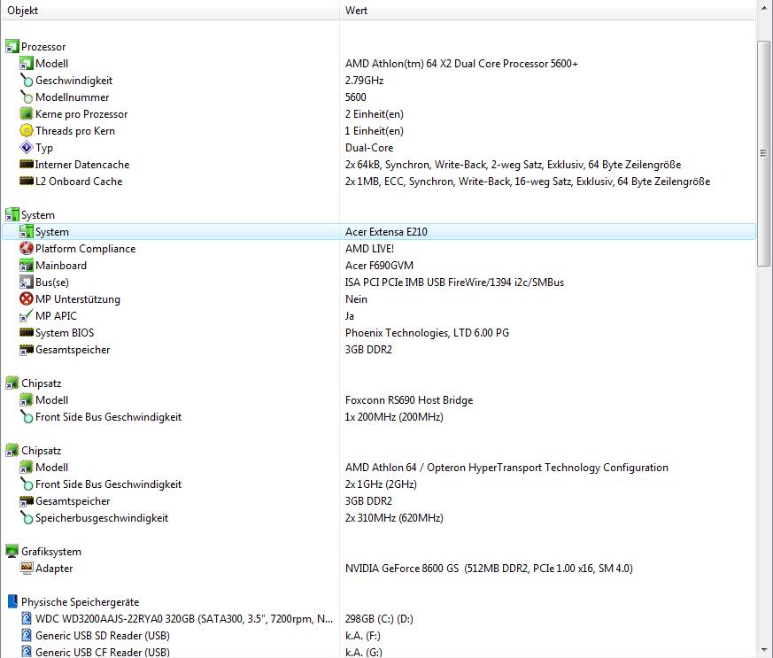 Also so schlecht sehen die Eckdaten von deinem Rechner eigentlich nicht aus. Mal abgesehen von der Grafikkarte vielleicht. Da könntest du in der Tat was verbessern. Ich kenn jetzt die Leistung einer 8600GS nicht, ich schätze sie aber im Bereich einer 8500GT ein, und die wäre für dein System definitiv unterdimensioniert.