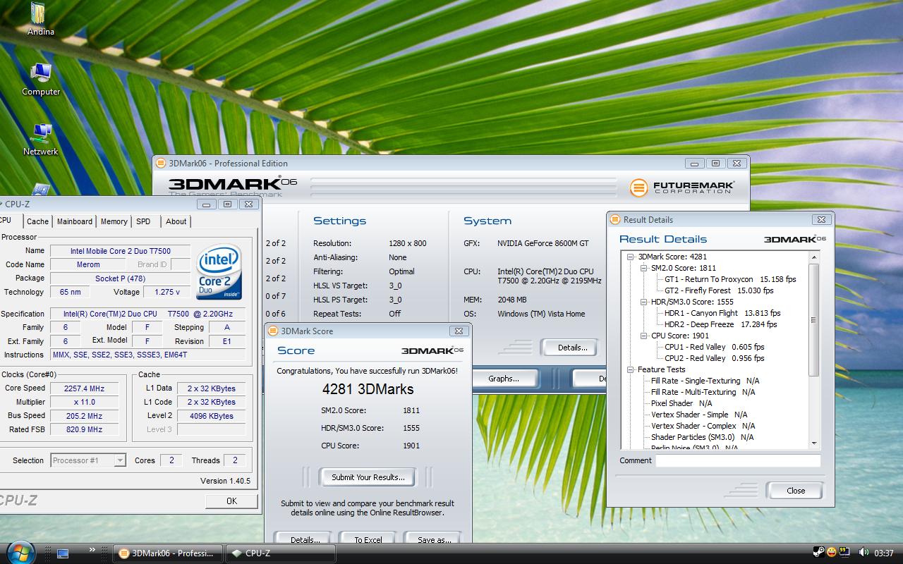 Standardeinstellung ist 1280x854. Und dass du über 6500 Punkte hast, glaube ich erst, wenn ich es gesehen habe. Oder hast du irgendwelche Einstellungen geändert oder übertaktet?