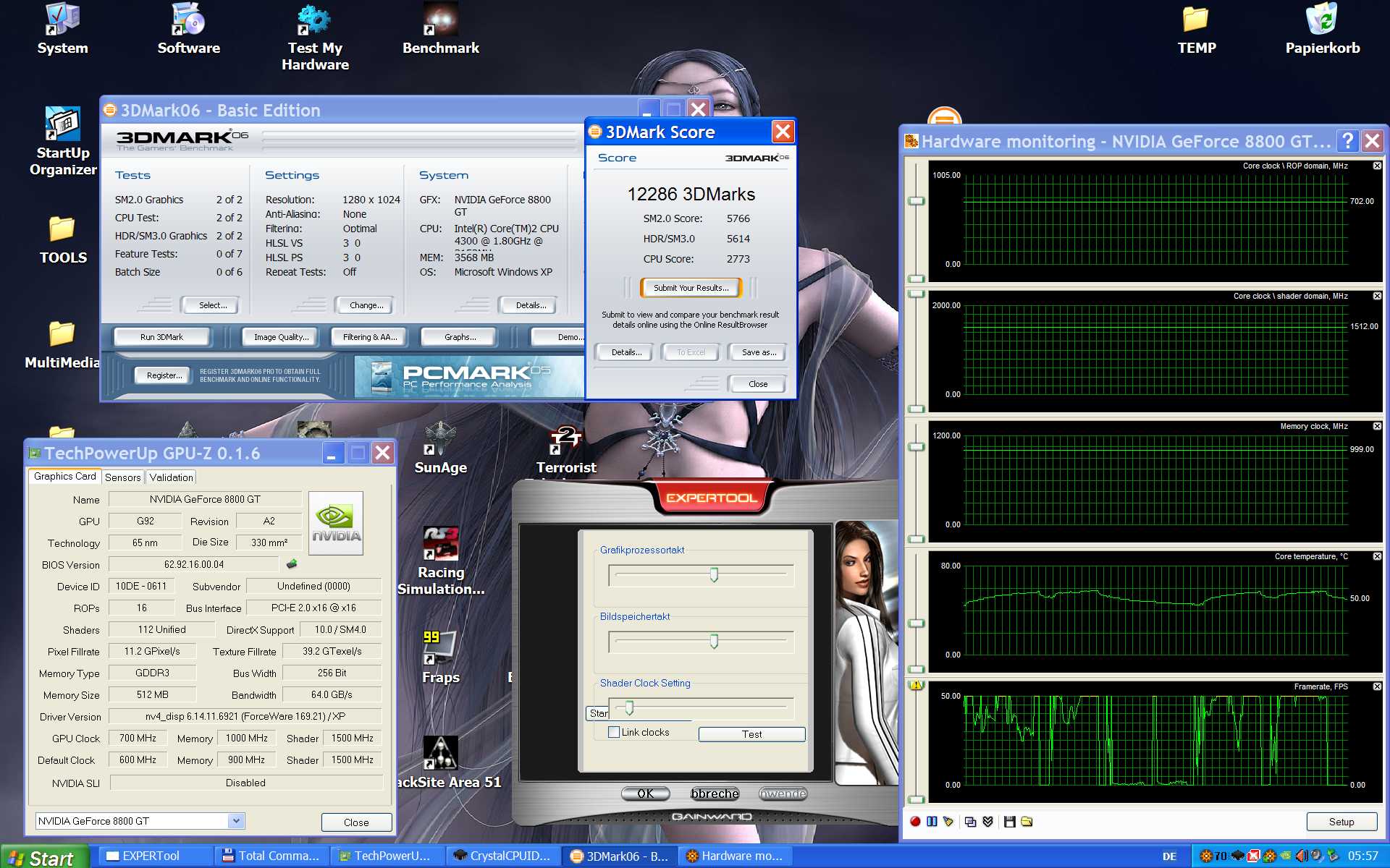 lol... wie viel punkte haste im 3dmark06? achja hatte mit meinen settings wie oben genannt 12210. hab dieses expertool geladen und ma getaktet und selbst diese settings lassen sich einstellen : is es gefährlich, mit diesen settings zu benchen? http://flickr.com/photos/18839079@N02/2262207897/