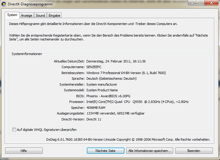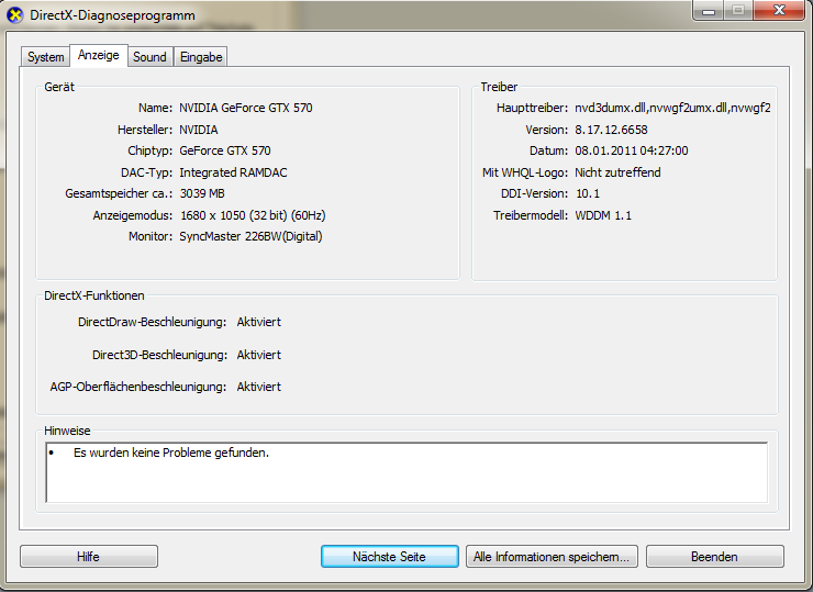 - DxDiag (0 Fehler)