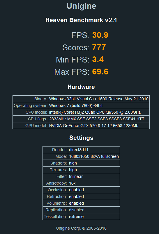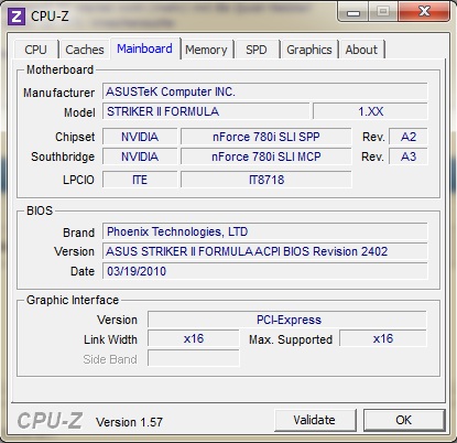 OS: Win XP SP3 MOBO: Asus Striker II Formula CPU: Q9550 GPU: Asus 8800 GTS 512 Top RAM: OCZ 4GB HDD: Samsung Spinpoint 1TB SOUND: Creative Audigy 2 ZS NT: Corsair HX 650W