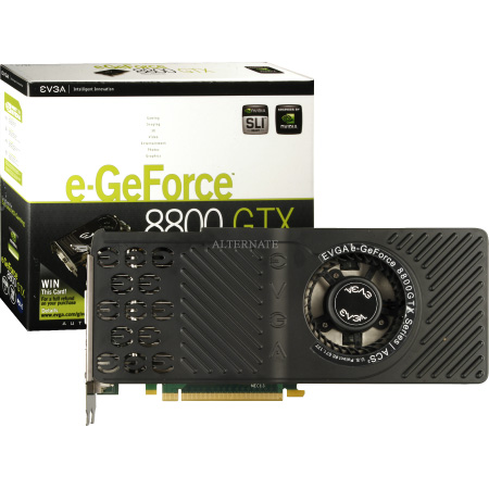 Grafikchipsatz: GeForce 8800 GTX / Steckplatz: PCIe / Schnittstellen: 2x DVI (Dual Link), TV-Out (HDTV) / Speichergröße: 768 MB / Speichertyp: GDDR3 / Speicherinterface: 384 Bit / Chiptakt: 575 MHz / Speichertakt: 1.800 MHz / DirectX-Unterstützung: 10.0 / Shader-Model: 4.0 / Unified Shader: 128 / Kühlung: aktiv (Referenzdesign) / Höhe (Steckplätze): 2 / HDCP-Unterstützung