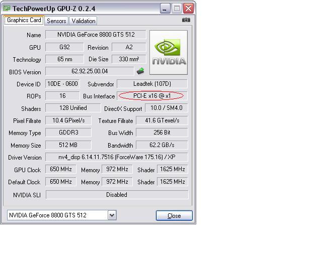 hab mir vor ner woche ne leadtek 8800 gts (g92) geholt und festgestellt dass sowohl benchmarkergebnisse als auch alle spiele einfach unakzeptabel langsam laufen. mich daraufhin an ein forum gewendet, meinten es sei mein netzteil, neues gekauft, eingebaut aber das problem besteht weiterhin. nun ist mir vorhin bei gpu-z folgendes aufgefallen