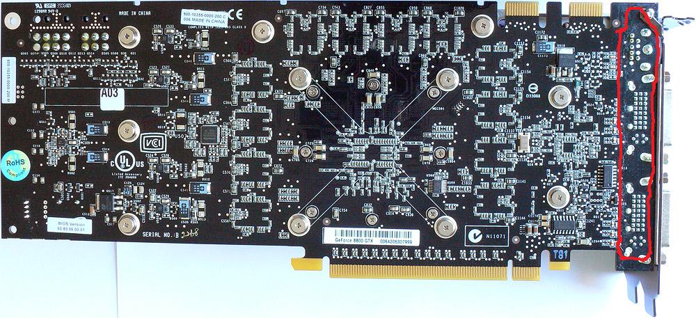 Und wies' das Schicksal will, ist mir das - stromleitende - Slotblech auf folgende Kontakte meiner 2ten Graka der länge nach gefallen: Bild befindet sich im Anhang.