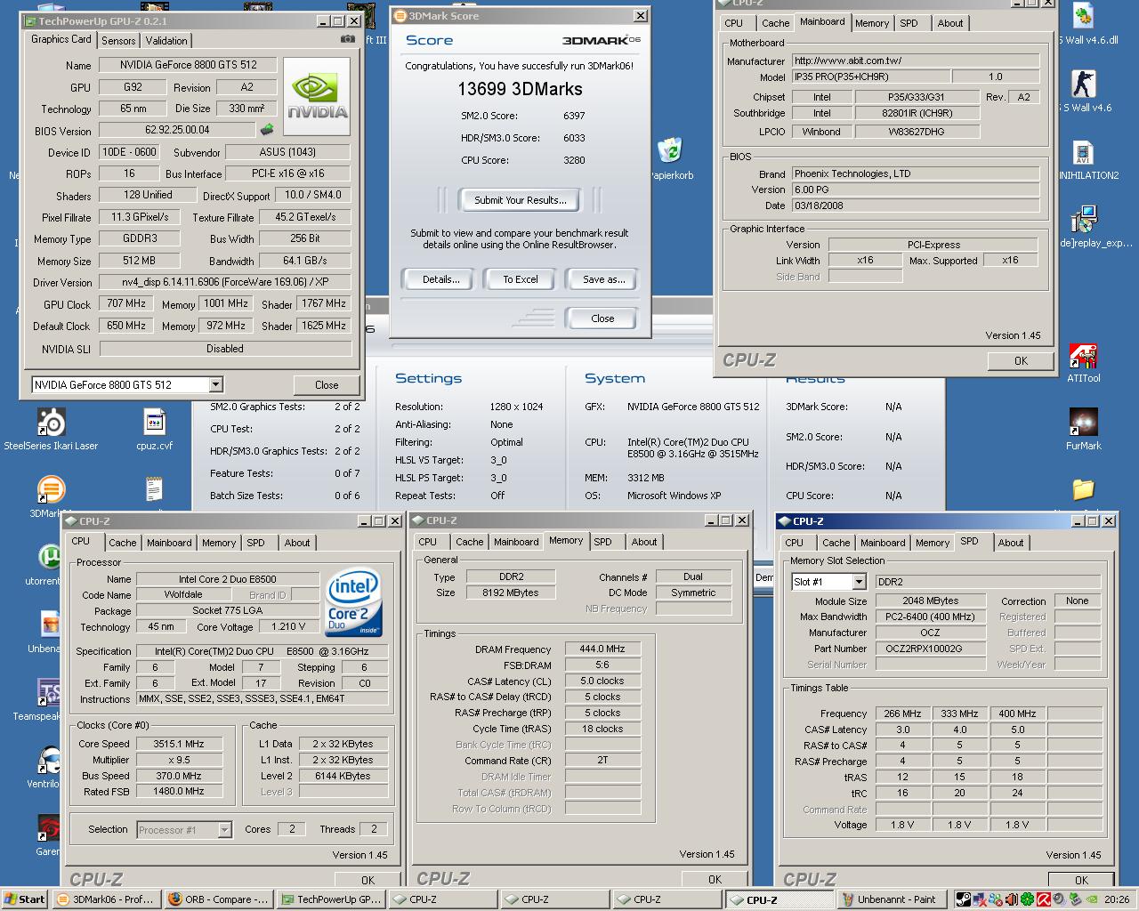 Habe eine Leadtek 8800gts. Beim Oc komme ich im Moment auf 795/1060/1913. Temp liegt beim AtiTool Test mit 75% Fan bei ca. 70 Grad. Muß aber dazu sagen das ich einen Barebone habe, von daher dürfte die Temperatur generell etwas höher sein als bei einem Tower.