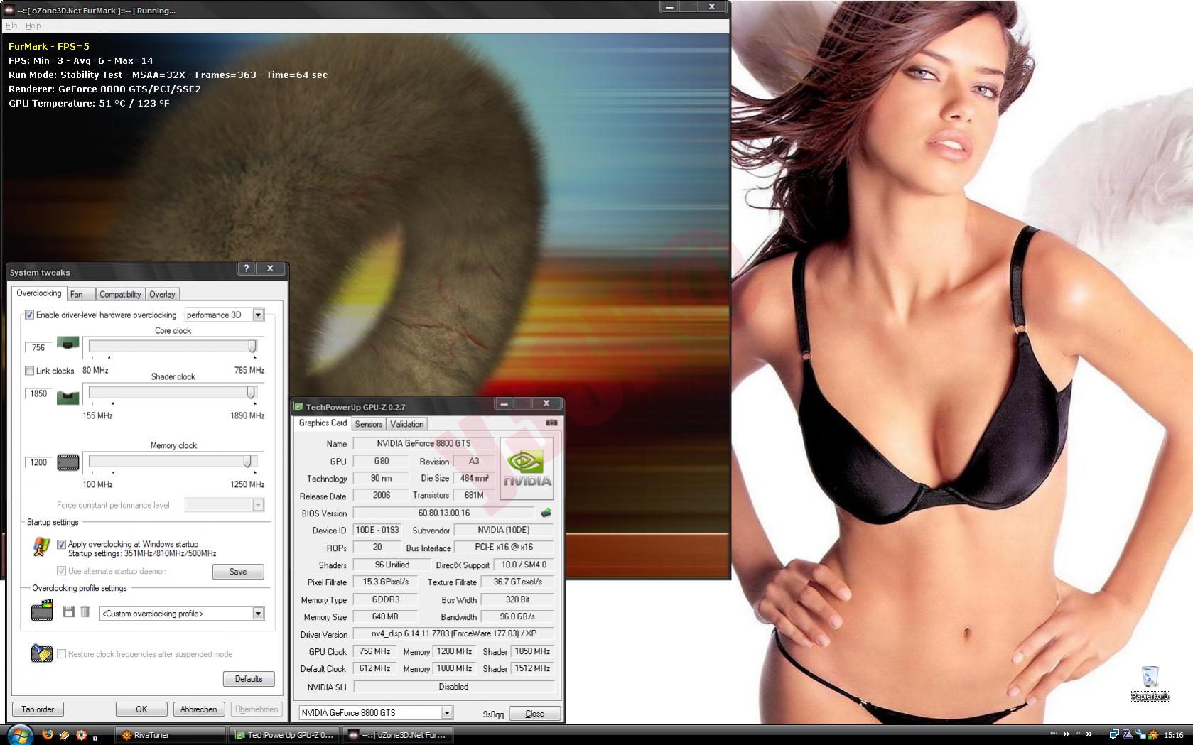 Validieren konnte ich sogar 765/1.890/1.250 MHz - mehr gibt der Rivatuner nicht her